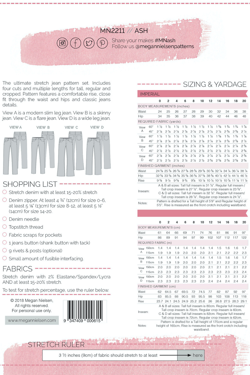 Ash Jeans 4 In 1 Megan Nielsen Patterns Sewing Pattern Simplifi Fabric